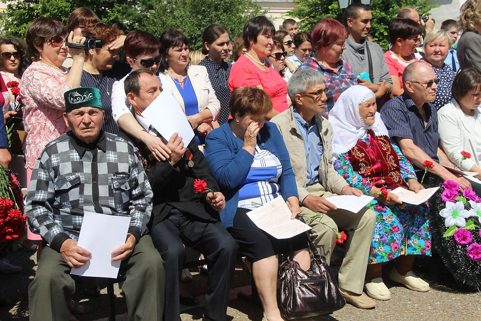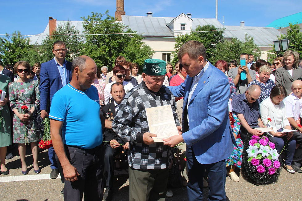 Прозвучали имена наших земляков, совершивших в годы войны героизм, сложивших головы на полях сражений. После поздравлений Марат Азатович вручил родным, близким 21 солдата наградные листы. После минуты молчания состоялось возложение цветов к подножию мемориального комплекса.